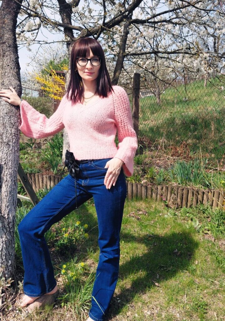 Wybrałam do projektu włóczkę, która jest miękka i przyjemna w dzierganiu, a przez to, że w swoim składzie ma aż 44 % bawełny, uznałam, że świetnie się nadaje na wiosenny sweterek.